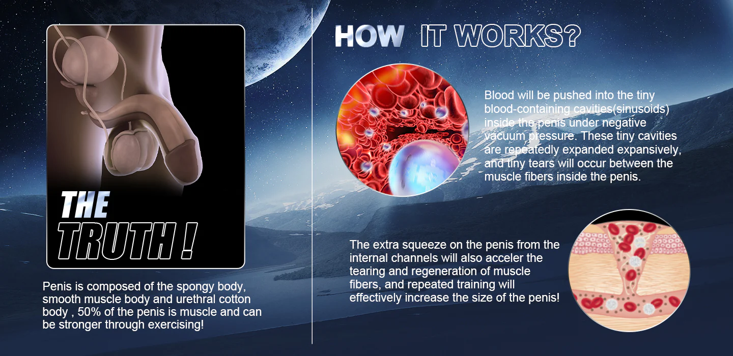 Scientific Strengthening — About half of the penis is made up of muscle, which can be strengthened through exercise. During vacuum pressure therapy, the expansion of the sinusoids causes the muscle fibers to tear, which may increase the strength and size of the penis over time.